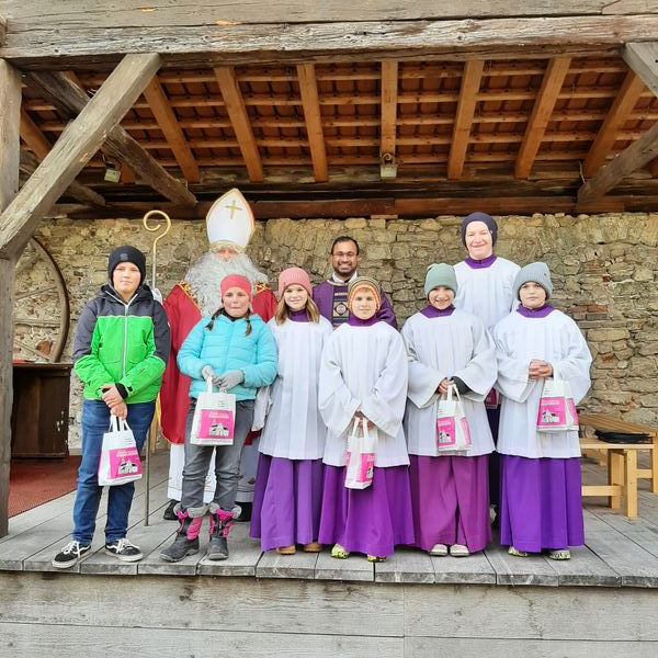 Ein weiterer Höhepunkt war die Predigt von Pfarrer Huber, die gemeinsam mit den Ministrant/innen gestaltet wurde. Anhand des Namens NIKOLAUS wurden – Buchstabe für Buchstabe – die Eigenschaften des heiligen Bischofs erklärt: seine Nächstenliebe, seine Hilfsbereitschaft, seinen Mut, seine Güte und seine Vorbildfunktion.
