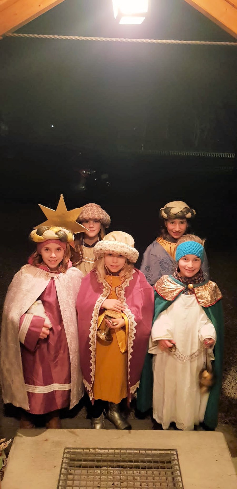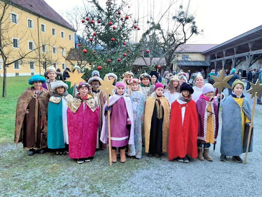 Kindermette mit Krippenspiel unter den Remisen von Kloster Reisach
