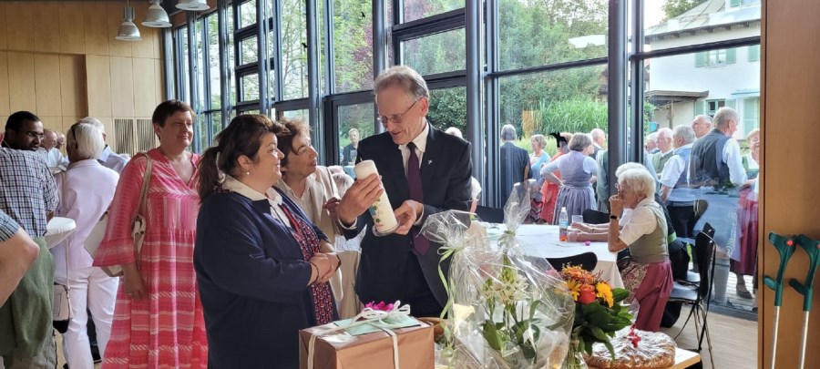 Im Anschluss an die Vorabendmesse fand im Pfarrheim eine kleine Abschiedsfeier statt. Jeder hatte die Gelegenheit zu einem kurzen oder langen Gespräch mit ihr, mit ihr zu lachen oder sich auch über Vergangenes und Zukünftiges auszutauschen. In einem kleinen Geschenkbuch haben Freundinnen und Freunde aus den Pfarreien Worte des Dankes, der Erinnerung und der guten Wünsche zusammengetragen.