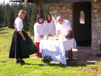 Auch an der von den Eigentümern selbst errichteten Kapelle neben der Hamberger Alm auf dem Riesenplateau fand bei wunderschönem Sommerwetter eine Bergmesse statt.