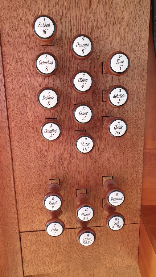 Die Orgel hat 2 Manuale, 19 Register. Sie ist windgeführt und hat einen vorgebauten Spieltisch.