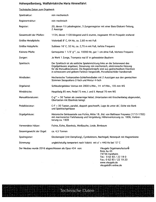 renovierung der Wallfahrtskirche Maria Egg hat die Orgelbauwerkstätte Michael Jocher aus Peiting 2014 eine neue Orgel geschaffen.