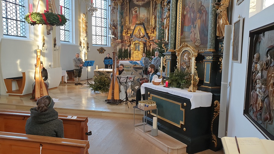 Am Sonntag dem 4. Advent fand in der Pfarrkirche St. Michael in Peiting ein Gottesdienst mit einem Werk von J. Haydn und einer Sonate für Hackbrett und Orgel von E. Barbella statt.