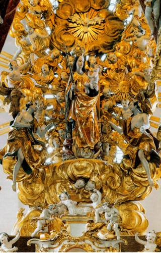 Die etwa 1,60m große "Liebliche Gottesmutter mit dem Kinde" ist eine hervorragende Landshuter Arbeit etwa um 1475.