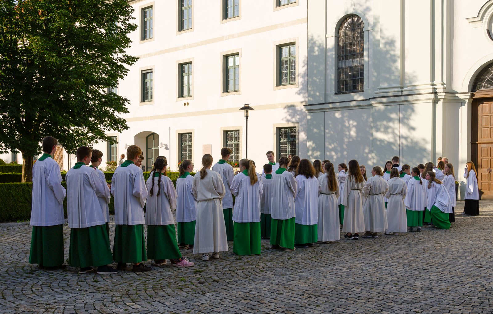 Rom im Hochsommer 2024: Einige Tage lang herrschte dort trotz brütender Hitze Feierlaune. Der Grund: Zehntausende Ministranten aus vielen Ländern Europas, v. a. aber aus dem deutschsprachigen Raum, bevölkerten die Straßen und Plätze der Ewigen Stadt. Unter ihnen ein Großteil der Rotter Minis, die sich zusammen mit ca. 25 weiteren Ministranten aus dem Pfarrverband Rott in der ersten Ferienwoche auf den Weg zur Ministrantenwallfahrt nach Rom machten. Elisabeth Kapsner, bis einschließlich August 2024 Praktikantin im PV Rott, hatte diese Reise zusammen mit einigen Ehrenamtlichen gründlich geplant und souverän durchgeführt. Pfarrer Bibinger nahm sich die Zeit, die Gruppe zu begleiten