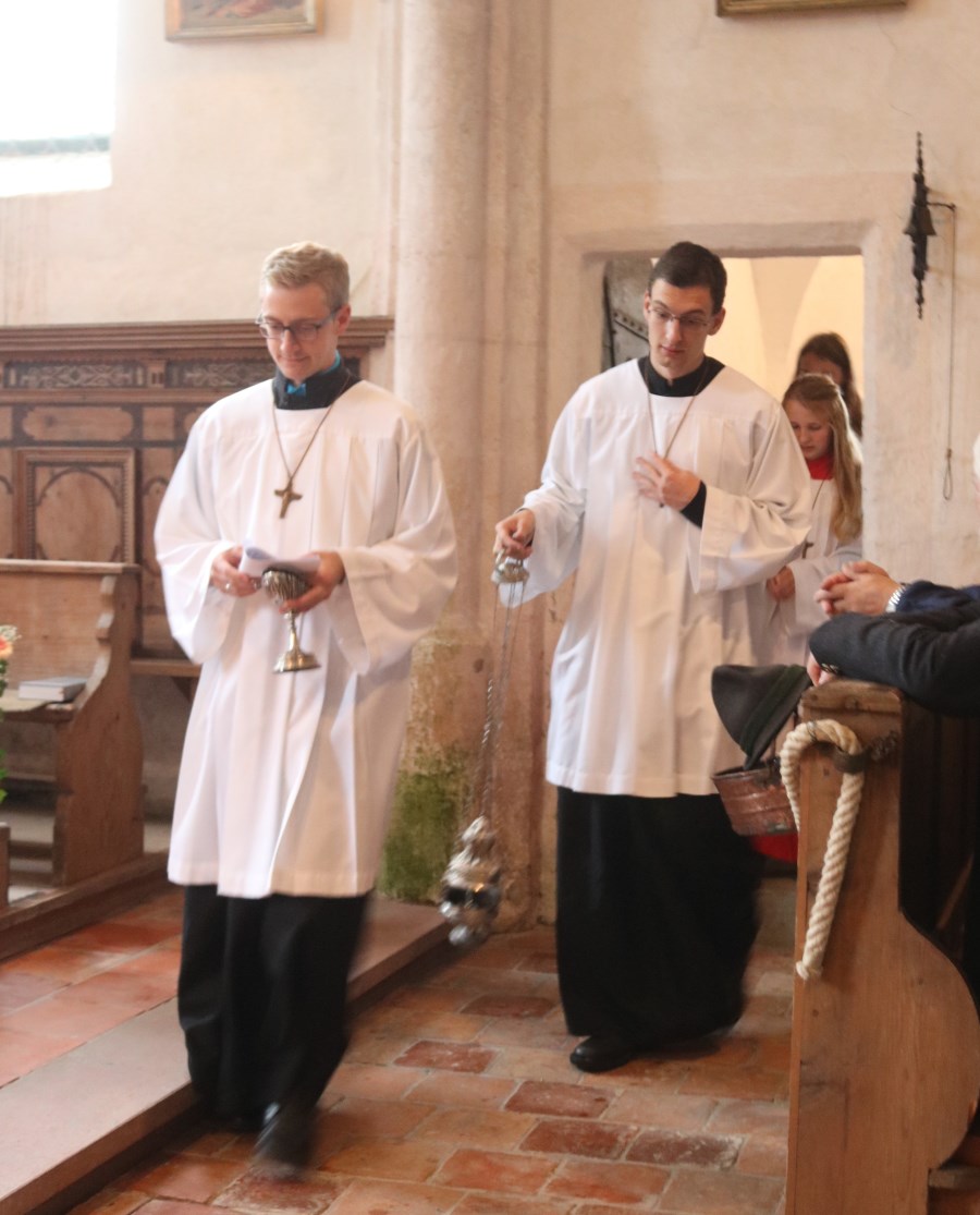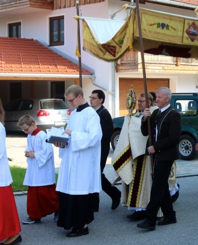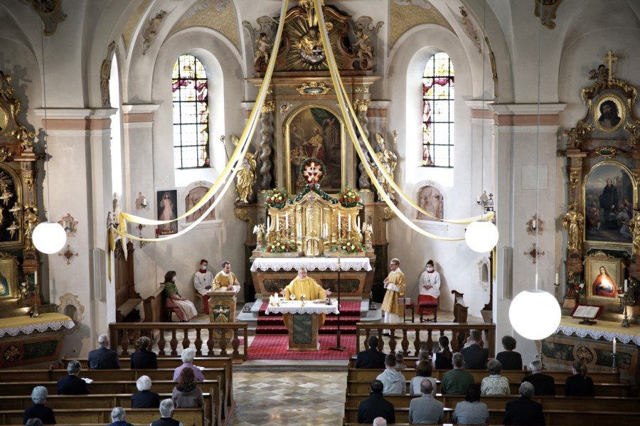 Wie momentan allgemein geltend, fanden die Gottesdienste zu Coronabedingungen statt. In die Kirche hinein konnte nur, wer sich im Pfarrbüro oder bei einem der Gottesdienste vorher namentlich angemeldet hatte. Mit Maske und bei genügend Abstand feierten zuerst die Surheimer und anschließend die Saaldorfer mit dem 30-jährigen frisch geweihten Diakon sowie mit Pfarrer Roman Majchar und Diakon Josef Enzinger in den „ausgebuchten” Kirchen den Gottesdienst. Organist Franz Glück begleitete beide Messen an der Orgel.