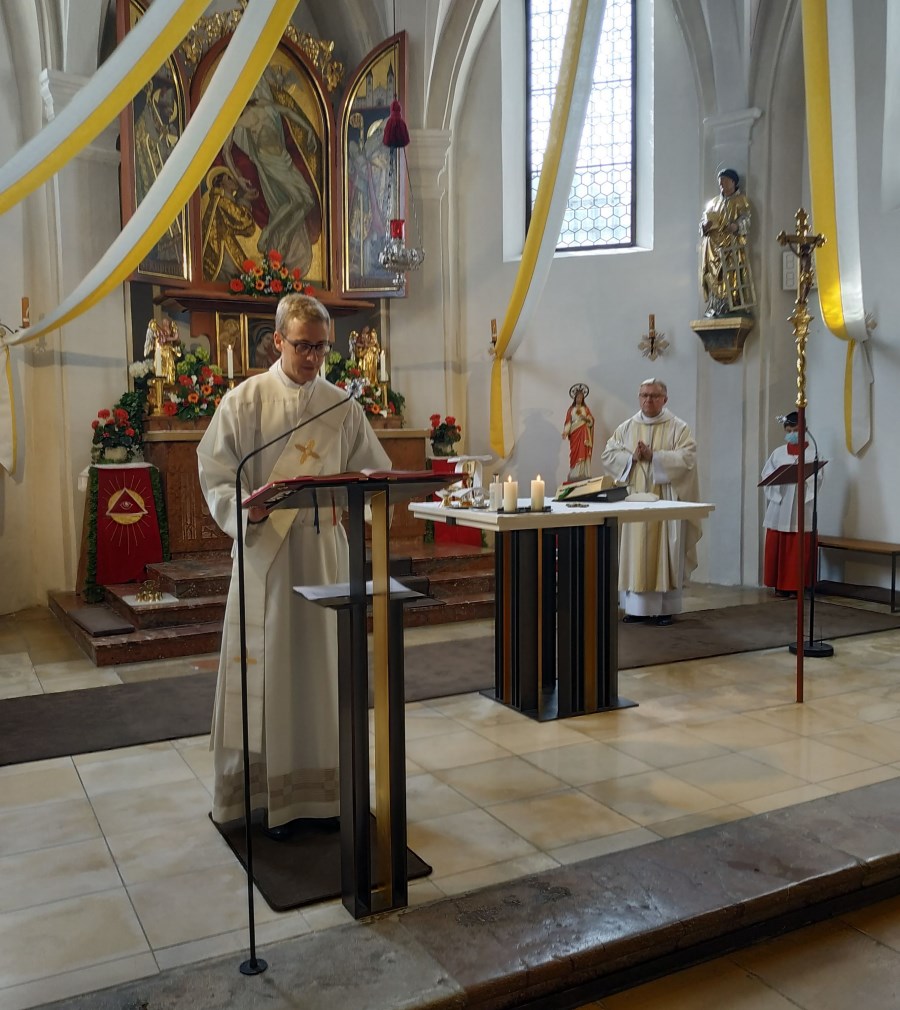 Er besuchte am Dreifaltigkeitssonntag die Pfarreien St. Stephan und St. Martin und predigte das erste Mal als Diakon:
