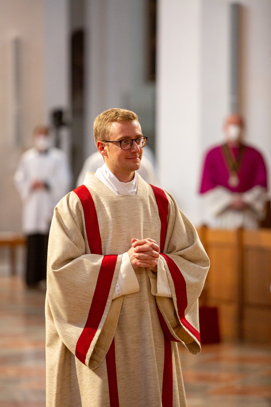 Diakon Tobias Pastötter sagte, Heimat sei ein Geflecht von Menschen mit starken Beziehungen zueinander. Dies seien die Familie, der Freundes- und Kollegenkreis. Zwischen diesen Menschen fließe etwas, das sich nur schwer beschreibe lasse. „Oft passt es einfach.” Zwischen Eheleuten, Freunden Diakonen und Priestern, zu Christus und Gott sei ein unsichtbares Band. „Das ist Liebe die bindet, die wie magnetisch anzieht und einander eins werden lässt.” Dies sei das Geheimnis des Lebens und Diakon Pastötter bezog sich auf die Heilige Dreifaltigkeit, in der Vater, Sohn und der Heilige Geist eins geworden seien in ihrer Liebesbindung. Das sei das Geheimnis des Glaubens.