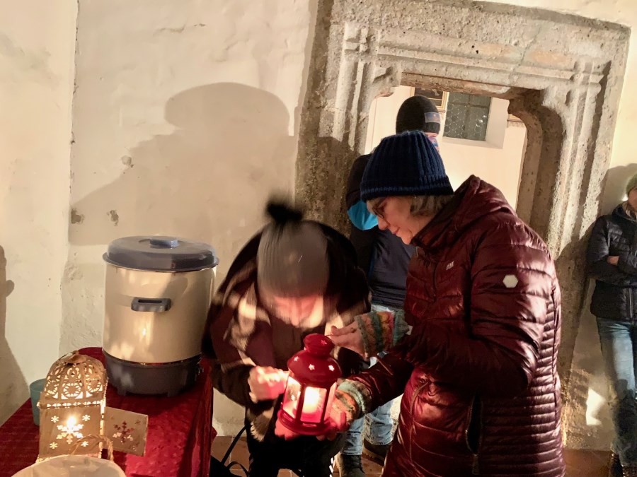Am Donnerstagabend vor dem 4. Advent haben Marianne Heß und Elke Boehringer das Friedenslicht beim Peterskircherl in Freilassing abgeholt. Es kann ab Heiligabend in den Pfarrkirchen abgeholt werden.