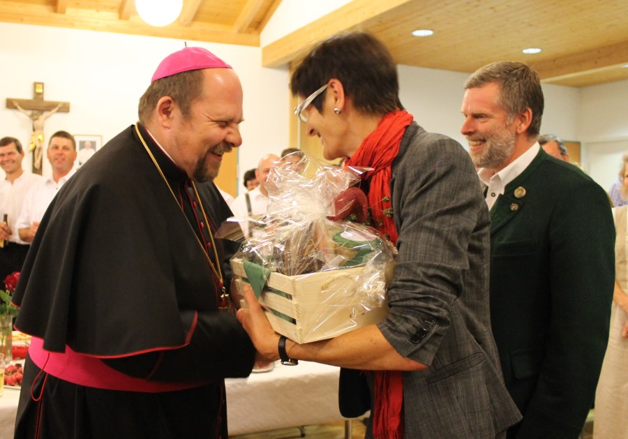 Während der Übergabe der Urkunde durch Weihbischof Bischof an Pfarrer Majchar dankte dieser, auch im Namen von Diakon Walter und den haupt- und ehrenamtlichen Mitarbeitern, dem Bischof, dass wir nicht zerteilt wurden, z. B. Saaldorf zum Pfarrverband Laufen und Surheim zum Pfarrverband Freilassing, wie es in vielen anderen Pfarreien nötig war.