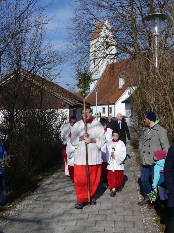 Mehrere hunderte Menschen ließen sich am Palmsonntag in Saaldorf und in Surheim ihre Palmbuschen weihen. Sie nahmen begleitet von den Musikkapellen Steinbrünning und Surheim unter feierlichem Kirchengeläut an den Prozessionen zu den Kirchen St. Stephan in Surheim und St. Martin in Saaldorf teil. Während die Erwachsenen jeweils in der Kirche die Gottesdienste besuchten, fanden daneben in den Pfarrheimen liebevoll und lebendig gestaltete Gottesdienste für Familien mit kleinen Kindern statt.