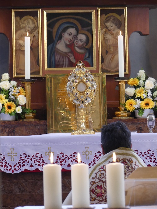Am Festtag zelebrierte Herr Pfarrer Roman Majchar die feierliche Messe. Musikalisch wurde der Gottesdienst vom Kirchenchor unter der Leitung von Kirchenmusiker Franz Glück umrahmt. In seiner Predigt sprach Pfarrer Majchar, dass das Kreuz und die Eucharistie ein wichtiges Zeichen der Christen ist und sie dazu stehen sollten.