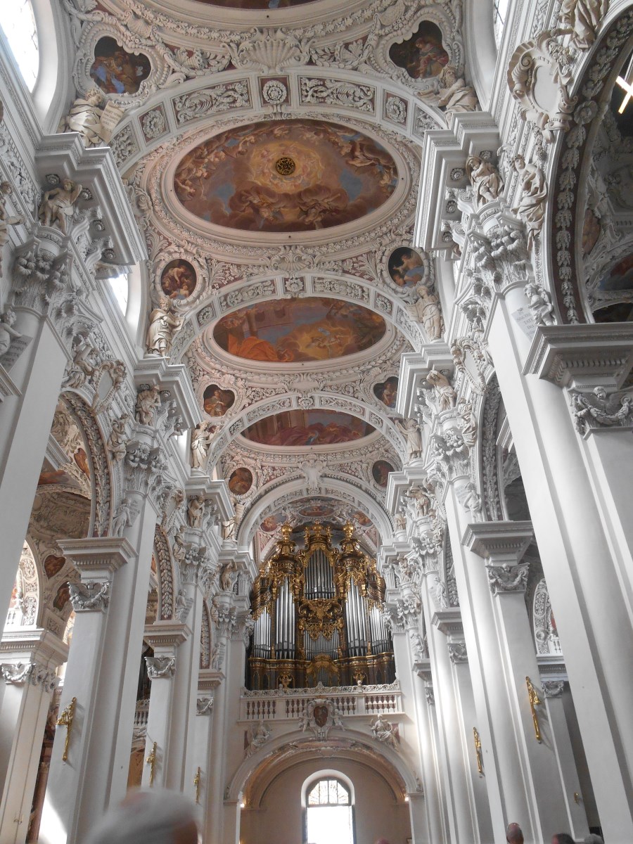 Im St. Stephansdom, dem Bischofssitz des Bistums Passau, bestaunten die Teilnehmerinnen den barocken Kircheninnenraum in dessen Kuppel sich ein Fresko befindet das Gottvater, umringt von zahlreichen Engel zeigt, wie er vom Himmel herab winkt. Der Hochaltar stellt die Steinigung des Heiligen Stephanus dar, dem Schutzpatron der Kathedrale. Natürlich ließen sich die Frauen das Mittagsorgelkonzert auf der größten Domorgel der Welt ,mit Werken von Johann Sebastian Bach, Felix Mendelssohn Bartholdy…. unter der Leitung des Domkapellmeisters nicht entgehen. Zwischendurch wurde noch die Frage geklärt, warum ein Mann in einer Kirche keine Kopfbedeckung trägt, nämlich weil die Kopfbedeckung eines Mannes früher ein Herrschaftszeichen war. „ Er hat den Hut auf“. Da in einer Kirche allein Gott die Ehre gebührt, trägt ein Mann in der Kirche traditionell keine Kopfbedeckung.