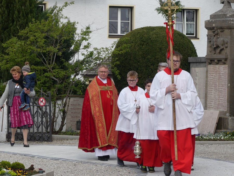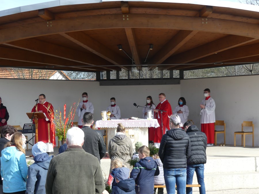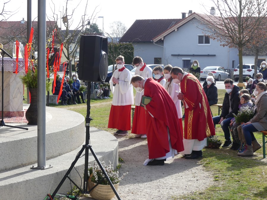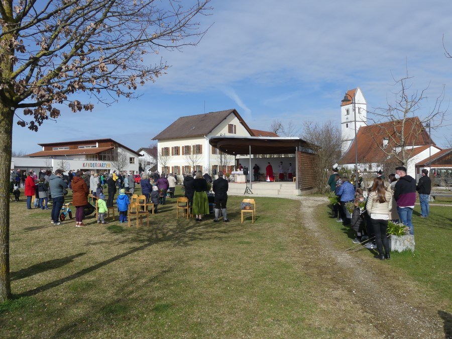 Pfarrer Roman Majchar hatte eingangs bei der Palmbuschweihe vor der Saaldorfer Schule und am Surheimer Dorfplatz darauf hingewiesen, dass die Tage des Fastens auf Ostern hin vorbei seien. An diesem Palmsonntag trete die Kirche in die österlichen Feierlichkeiten ein und begleite Jesu auf seinem Leidensweg. „Damit wir Anteil erhalten an seiner Auferstehung und seinem Leben.” Die gesegneten Palmzweige seien Zeichen des Lebens und der Hoffnung, beschrieb Christa Wohlschlager im Kindergottesdienst in Saaldorf.