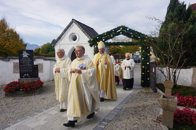Konzelebranten in die festlich geschmückte Kirche ein.