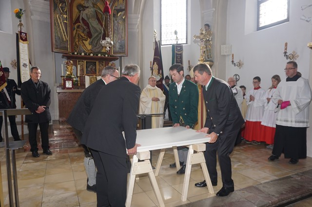 in das Reliquiengrab des Altares legen. Vier Männer hoben die schwere
