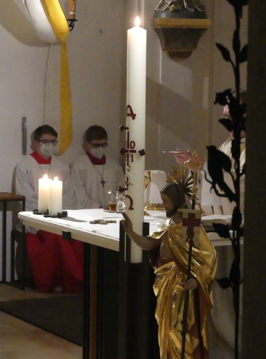 Osterkerze entzündet.