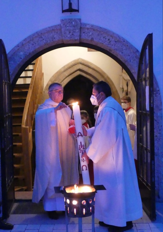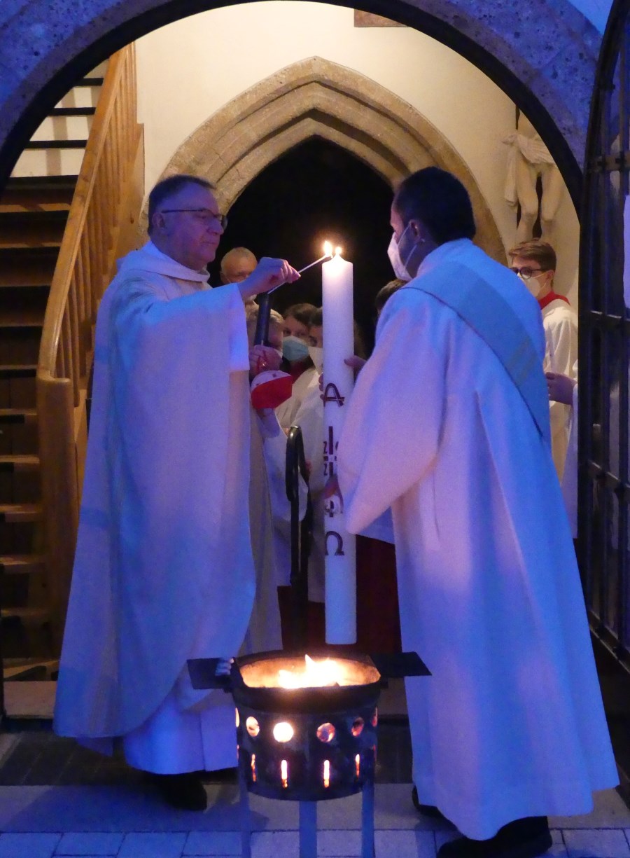 Zu Beginn entzündete der Bischof die Osterkerze, weihte das Taufbecken