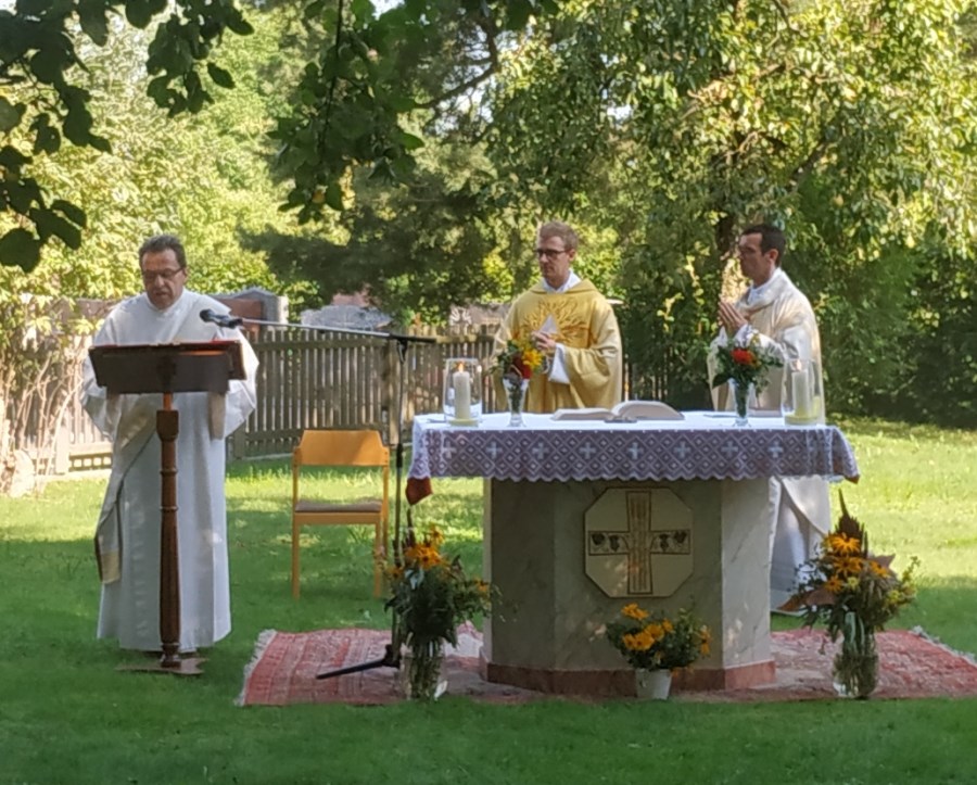 Am Abend kamen alle noch zu einer Dankandacht im Gotteshaus zusammen, wobei die Andachtsgegenstände von Rudolf Kersten gesegnet wurden.