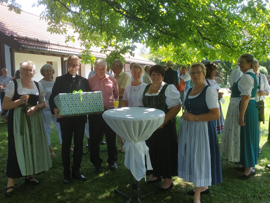 Eine besondere Ehrung wurde der Pfarrsekretärin Monika Penka zuteil. Für ihre mittlerweile 30 jährige Dienstzeit bedankte sich Pfarrer Roman Majchar, Kirchenpflegerin Resi Heinz und Hilde Huber als Pfarrgemeinderatsvorsitzende für die oft nicht leichte Arbeit, und hoffen weiterhin auf gute Zusammenarbeit. Für Unterhaltung beim Pfarrfest, das erst in den späten Nachmittagsstunden seinen Ausklang fand, sorgte die Musikkapelle unter der Leitung von Felix Hagenauer.