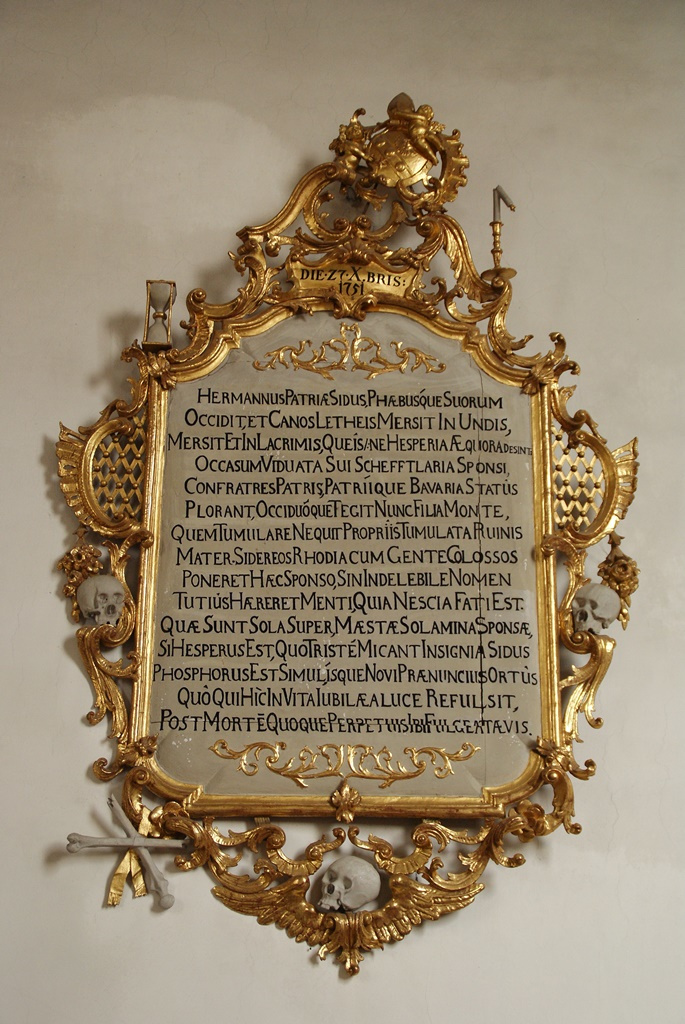 Er fand 1751 sein Grab in St. Georg, weil die Klosterkirche zu dieser Zeit ebenfalls Baustelle war. Sein Epitaph hängt an der Wand des Chores.