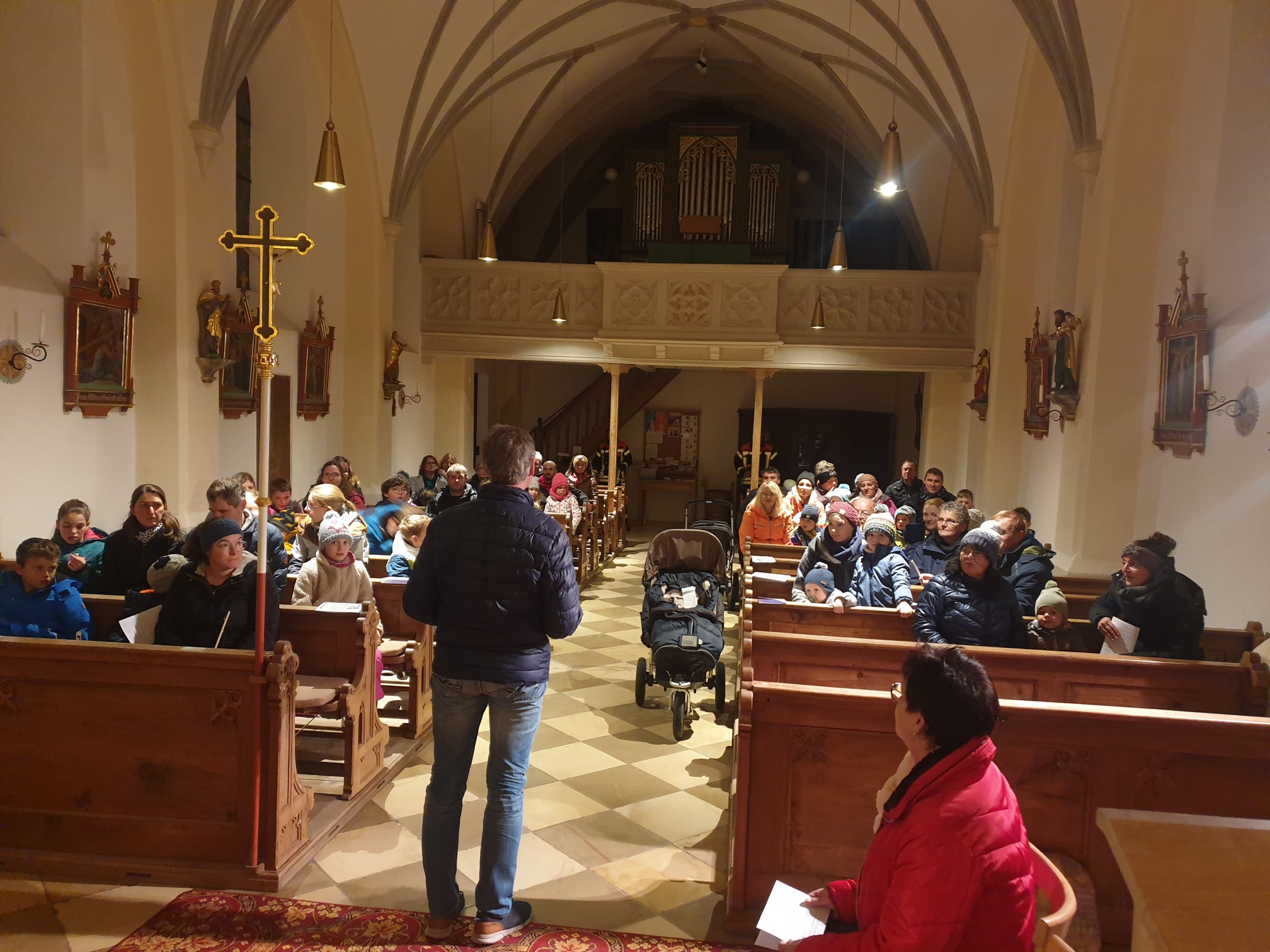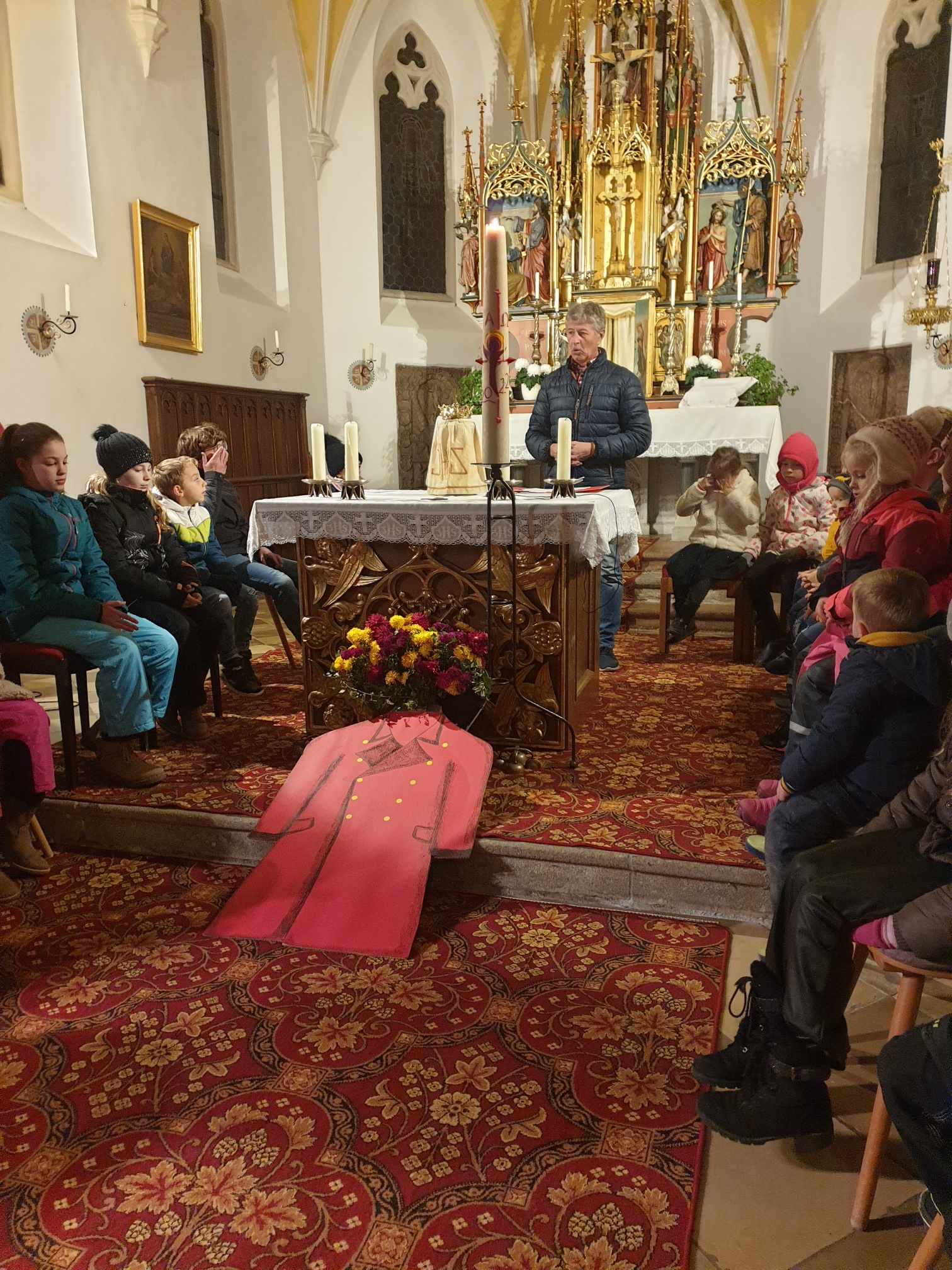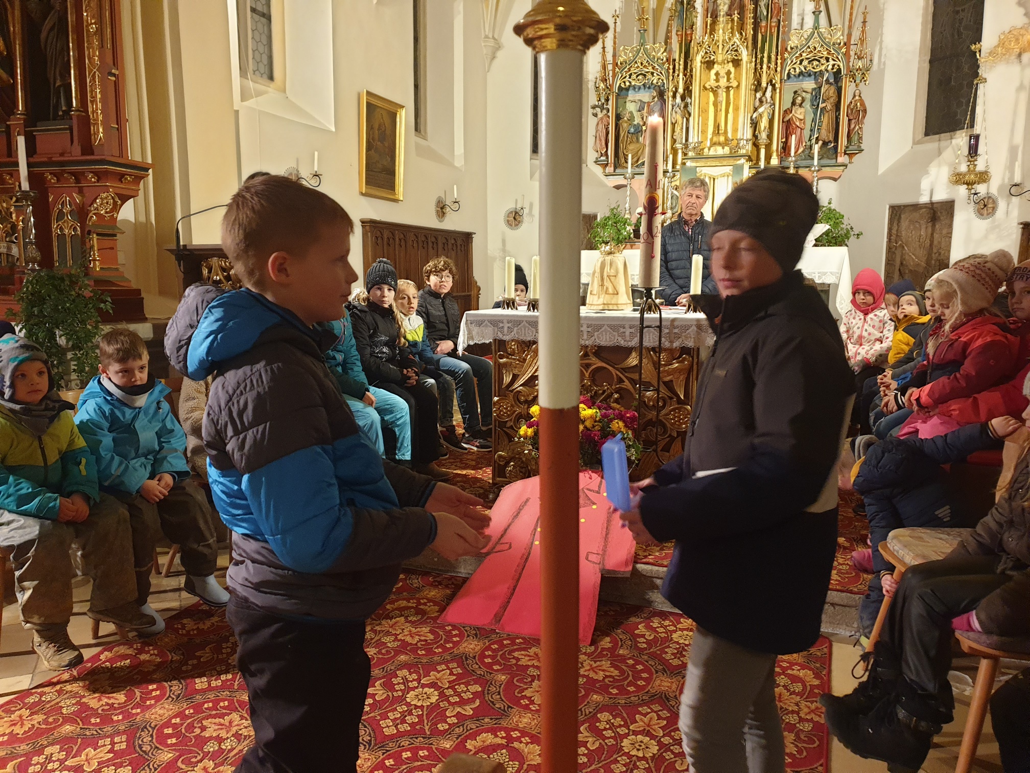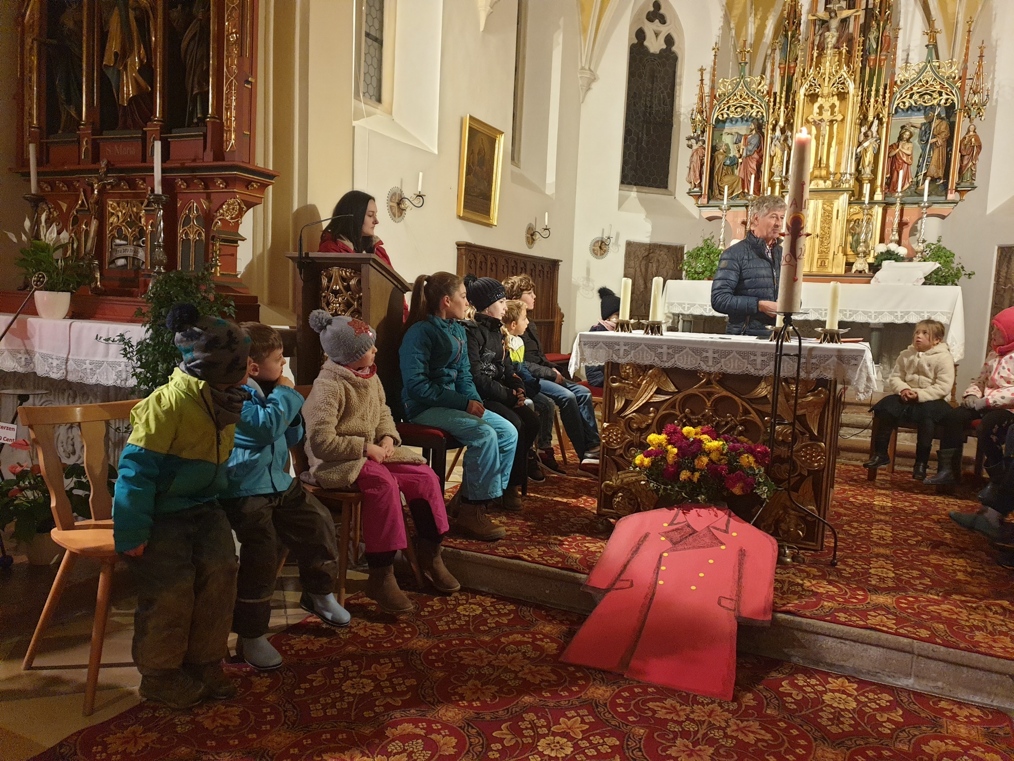 Eltern und Großeltern zu einer kleinen Martinsfeier in der Söller Kirche.