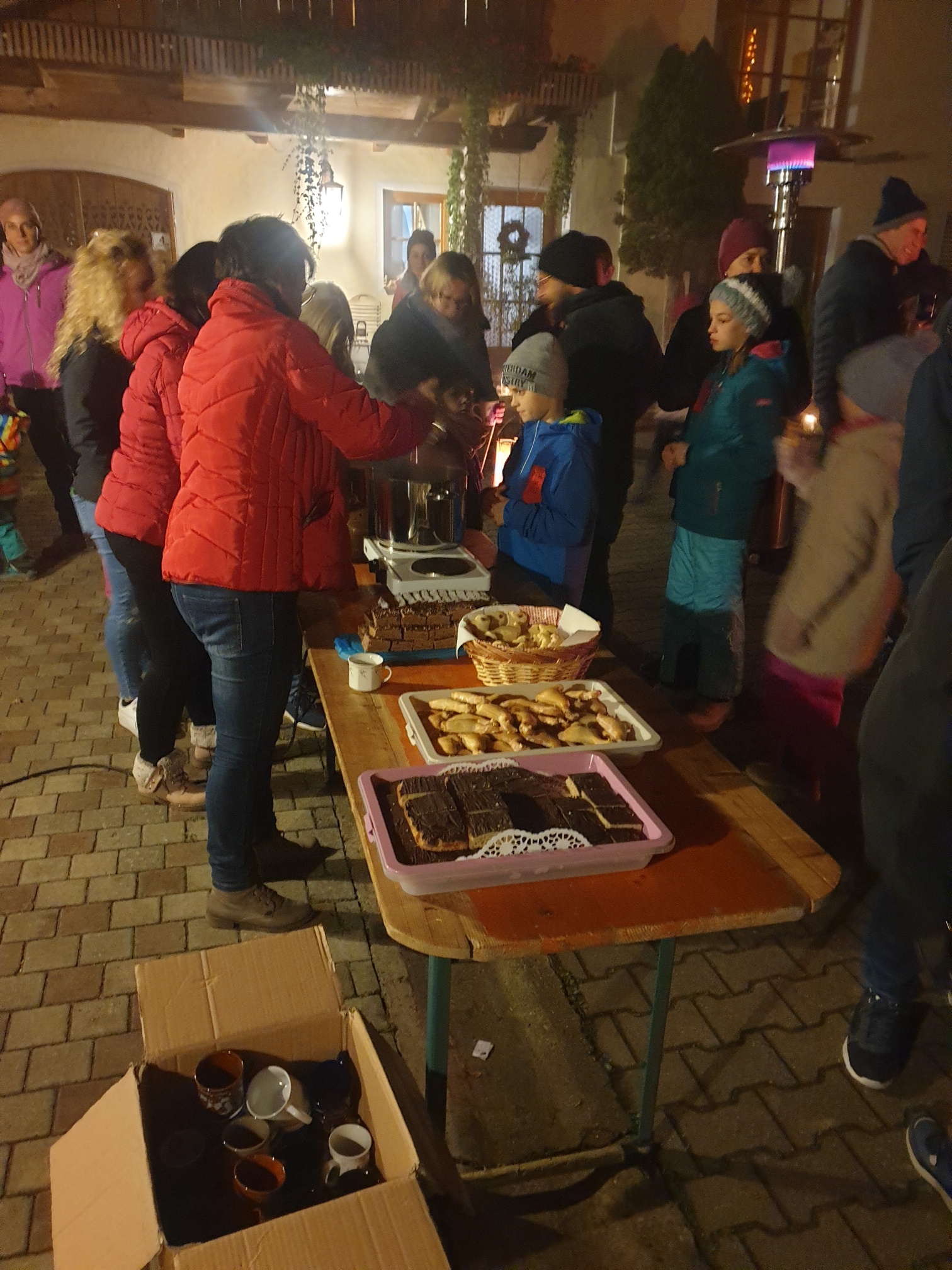 Im Anschluss zogen sie mit ihren Laternen durch das Dorf. Der Umzug endete traditionell im Nützlhof, wo gemeinsam am Lagerfeuer bei Kinderpunsch und Glühwein weitergefeiert wurde.