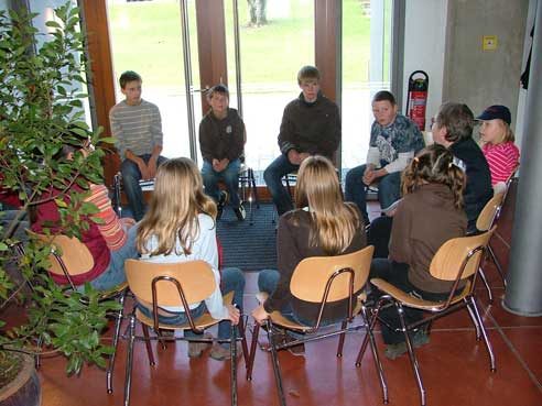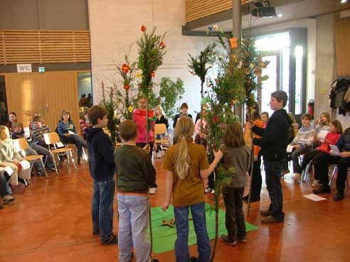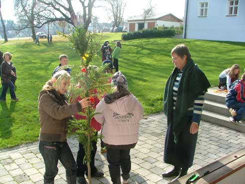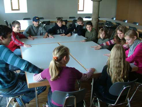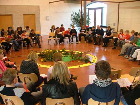 Im Rahmen des Glaubensweges zum 10jährigen Bestehen des Pfarrverbandes folgten über 70 Ministranten der Einladung von Pfarrer Paul Janßen mit seinem Seelsorgeteam. Zusammen mit Pater Josef Stöckl und Schwester Edigna Menhard begegneten die Ministranten der Gestalt des heiligen Christophorus auf besinnliche wie kreative Weise. So gestalteten sie Christophorusstäbe, mit denen die Ministranten am kommenden Sonntag beim Festgottesdienst mit Weihbischof Bernhard Haßlberger in die Schönberger Pfarrkirche einziehen werden.