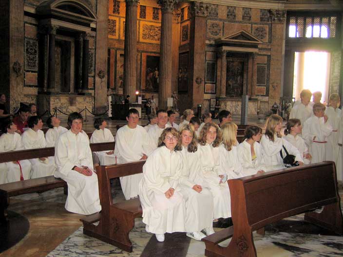 Auch in diesem Jahr waren die 3 Tage in Rom mit einem interessanten Programm gefüllt: Generalaudienz bei Papst Benedikt XVI, Besuch des Colloseums, Besichtung der Basilika St. Paul vor den Mauern und er Peterskirche, Führung durch die Katakomben der Hl. Angela und durch das Antike Forum Romanum, Gottesdienst im Pantheon, Postenlauf durch die Altstadt Roms, Münzewerfen am Trevibrunnen, Erklimmen der Spanischen Treppe, Pizza- und Eisessen ...