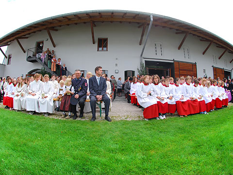 Mehr als 1000 Gläubige fanden sich am Sonntag, den 19. Juli, im reich geschmückten Pfarrhof in Oberbergkirchen ein, um mit Stephan Fischbacher dessen Nachprimiz zu feiern.