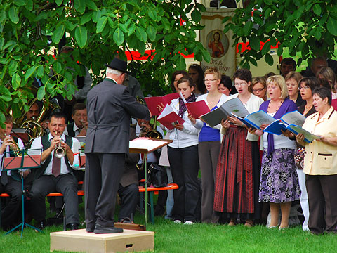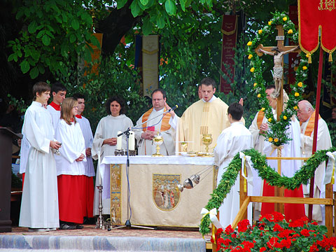 Die Eucharistiefeier wurde gewohnt festlich zelebriert. Musikalische Untermalung fand die Feierlichkeit mit Kapelle und Chor, geleitet von Franz Weyerer. Der Gottesdienst schloss mit dem Primizsegen.
