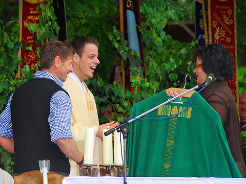 Zur Gabenbereitung konnte Fischbacher ein erstes Geschenk entgegennehmen: