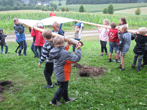 Das diesjährige Kinderbibelzeltlager des Pfarrverbandes Schönberg fand aufgrund des vielen Regens nicht in Zelten, sondern im Pfarrheim von Oberbergkirchen statt.
