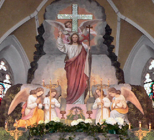Das obere Teil des Heiligen Grabes mit dem Auferstandenen am Ostersonntag: