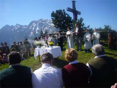 Pastoralreferentin Claudia Stadler, die mit Mini Hauser und Simon Eder den Wortgottesdienst unter dem Gipfelkreuz gestaltete, betonte die Anziehungskraft der Berge mit ihrer Ruhe und Stille. Den Jagdhornbläsern aus Mühldorf gelang es, mit ihrem Beitrag auch die zufällig vorbeikommenden Bergwanderer zum Mitfeiern zu bewegen. Nach dem Berggottesdienst nutzten einige die Gelegenheit zum Wandern, andere kehrten bei der Rossfeldalm ein, um den strahlend blauen Bergsommertag zu genießen.