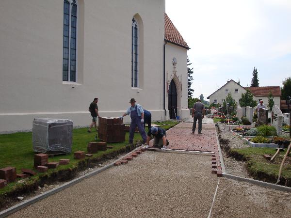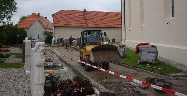 Der Kirchenpfleger und Mesner Georg Eder musste nicht lange bitten, um eine "gestandene" Helferschar für den behindertengerechten Ausbau des nördlichen Zuganges zum Friedhof und zur Pfarrkirche zu finden.
