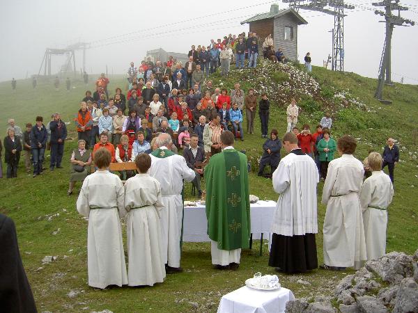 Pfarrer Paul Janßen zelebrierte zusammen mit Pfarrer Axel Meulemann und Priesteramtskandidaten Stefan Leitenbacher den Gottesdienst auf dem Sudelfeldkopf.