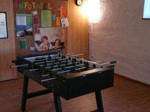 mit einem Kickerkasten und einer