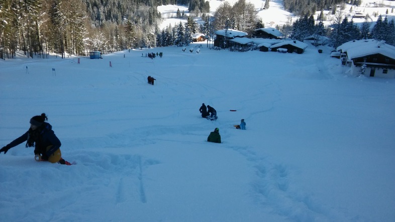 Doch am Samstag haben 8 Mitglieder beschlossen, Langlaufen auszuprobieren. Währenddessen fuhren die anderen den nahegelegenen Berg mit Schlitten runter. Zum gemeinsamen Mittagessen trafen sich dann alle wieder auf einer Berghütte.