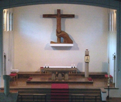 Der Altarraum wird dominiert vom Kreuz, das Siegfried Moroder 1961 geschaffen hat.