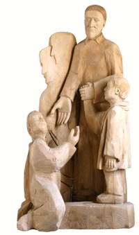 Die Figur des linken Seitenaltares wurde in ihrer auf den ersten Blick fast romanisch anmutenden Klarheit und Strenge ebenfalls von Franz Hämmerle gefertigt.