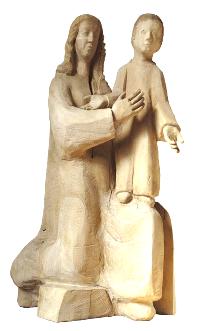 Bei näherer Betrachtung bemerkt man aber doch das gütige, freundliche Lächeln mit dem uns die Gottesmutter bedenkt und das ernste, wissende Gesicht des nicht mehr ganz so kleinen Jesukindes, das uns durch seine geöffneten Arme zum Kommen einlädt.