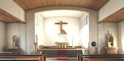 Ein Blick ins Kircheninnere zeigt eine freundliche, moderne Kirchengestaltung