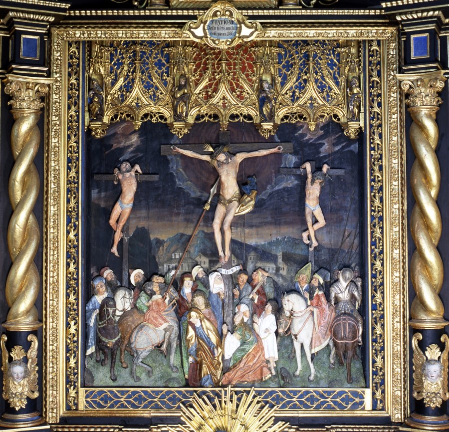 Im Seitenschiff steht noch der prachtvolle gotische Kreuzaltar mit einer sehr lebendigen Darstellung der Kreuzigung Christi. Alle diese Kunstwerke stammen aus der Zeit um 1484. Das reich geschmückte Chorgestühl wurde ca. 1733 aufgestellt.