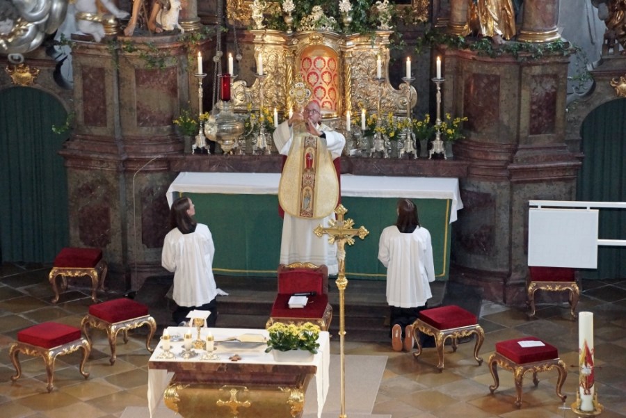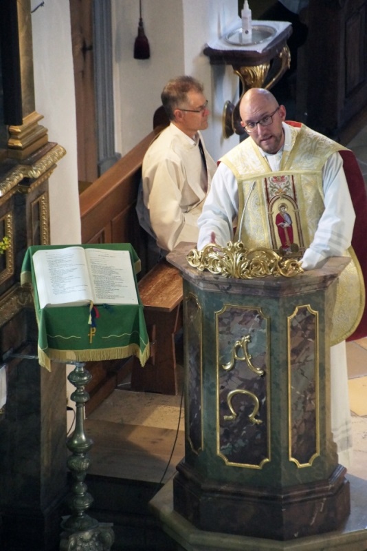 Besonders bewegend war auch die kleine Dankandacht mit Aussetzung des Allerheiligsten gleich im Anschluss an die Messfeier. Er dankte dabei für die Menschen, denen er in diesen drei Jahren begegnet ist, für das gute Miteiander, für das rege Vereinsleben, für die Mahlgemeinschaft bei den Schwestern im Kloster St. Josef, um dann anschließend den eucharistischen Segen für die Menschen im Pfarrverband zu erbitten.