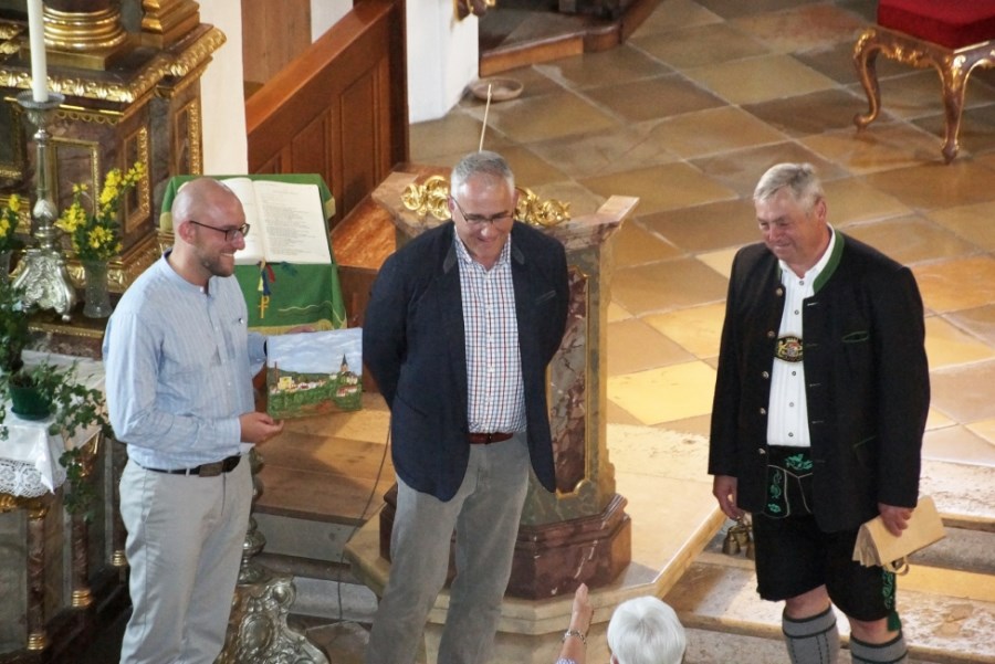 Als Erinnerung gab es dann von Kirchenpfleger Ernst Aicher eine Gemäldeansicht von Teisendorf, gefertigt vom Teisendorfer Künstler Hermann Egger aus Oberstetten.