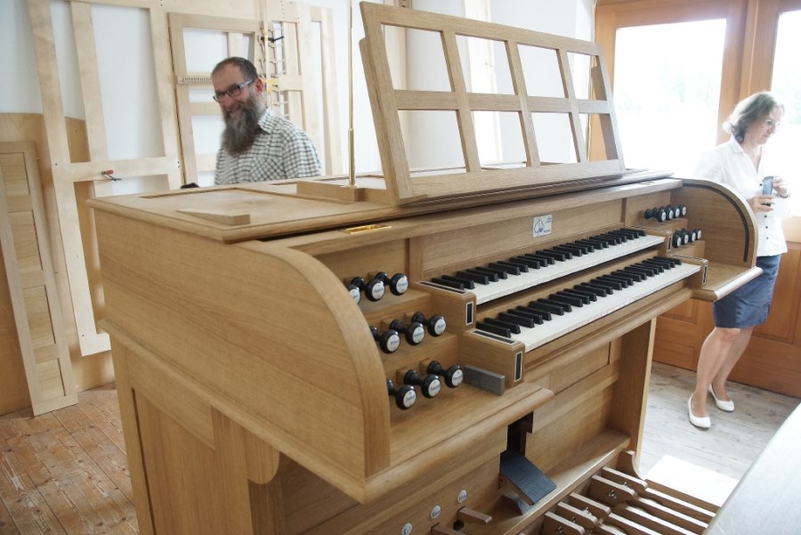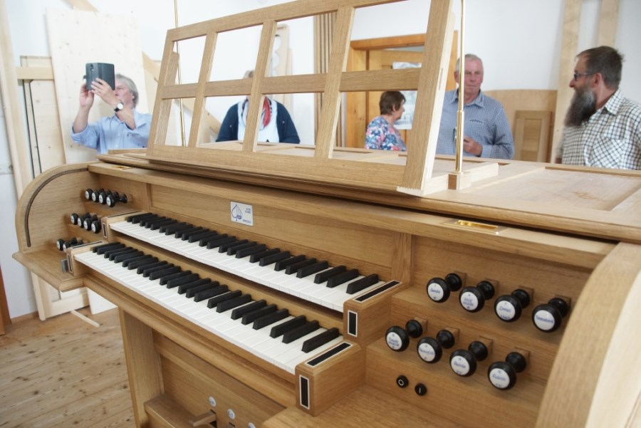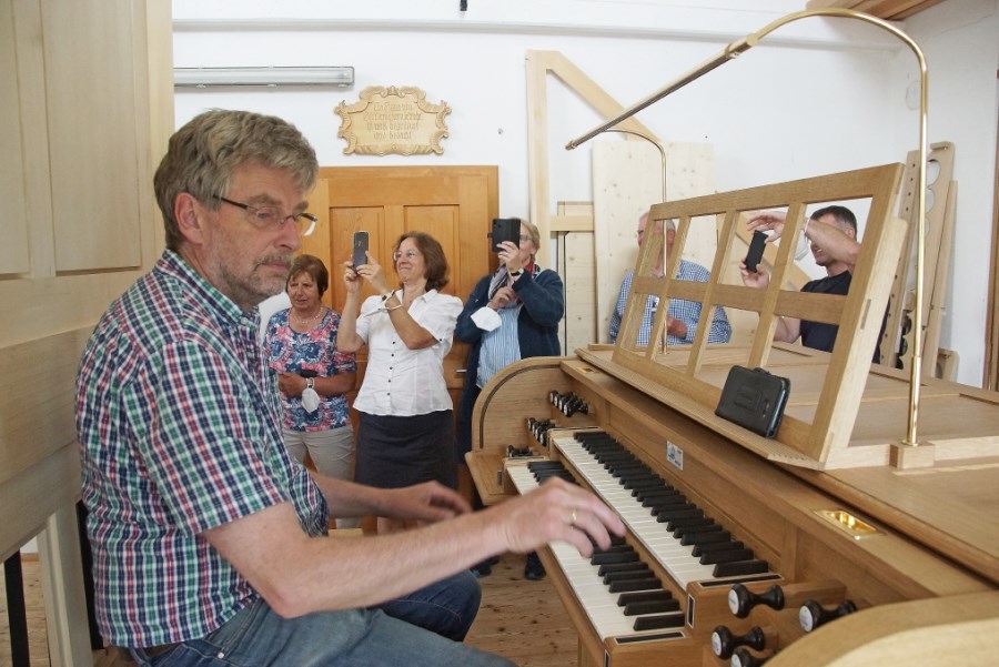 Mit Verwunderung wurde das elegante Instrument begutachtet und die ersten Töne aus den wenigen eingebauten Pfeifen fasziniert zur Kenntnis genommen.