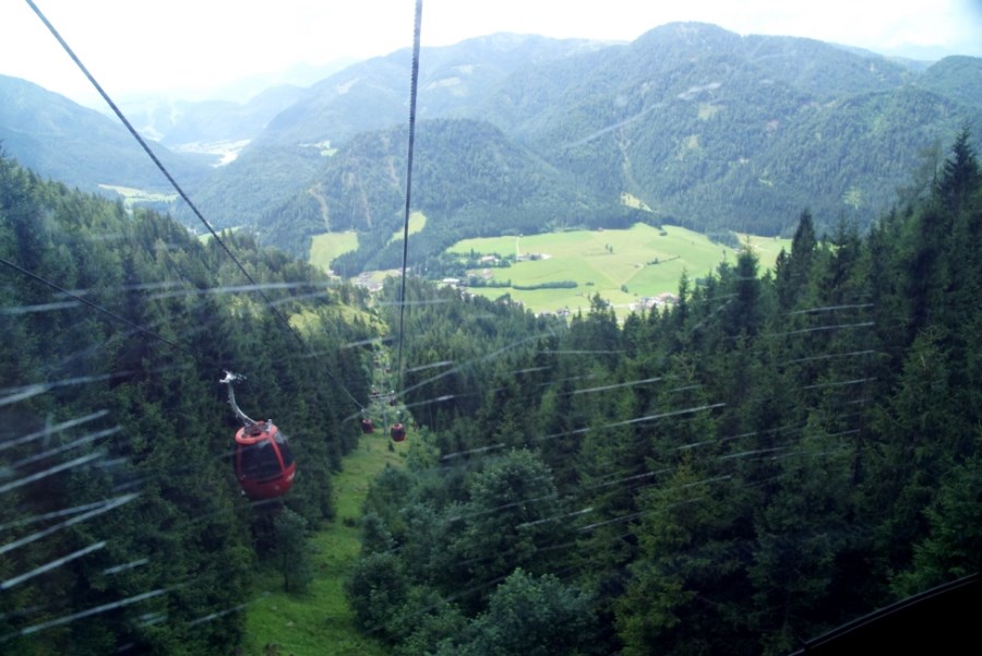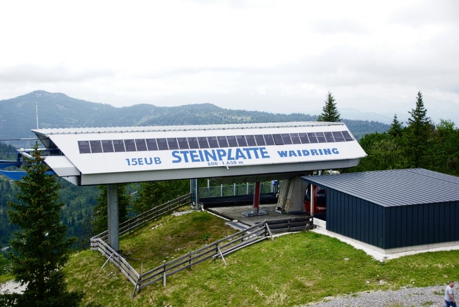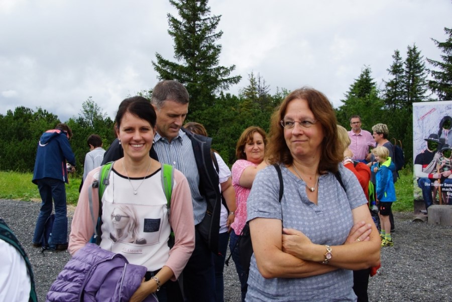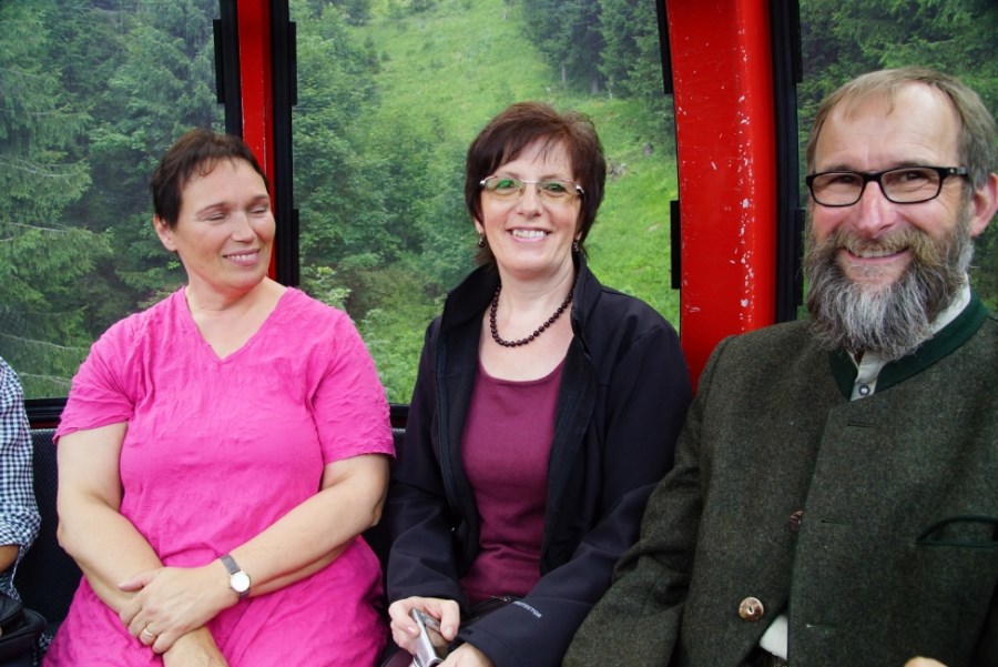 Nun fuhren wir auf der tiroler Seite weiter, bis der Bus in Weidring bei der Gondeltalstation anhielt. Das Ziel war also die Steinplatte. Ein paar dunkle Wolken sind wieder aufgetaucht, aber die Temperatur war ganz ok. Auch die Auffahrt haben alle "überlebt", zumal die Masten ganz "saaaaanft" genommen wurden, so wie es die Monika in ihrer Mundart zu sagen pflegt. Sie verriet uns auch, dass es ein Wort gibt, in dem alle drei A-Betonungen der österreichischen Sprache in einem Wort zu finden wäre: "Hartfaserplatten" - wer dies im Originalton hören möchte, wende sich am besten direkt an die Monika. Sie gibt gerne Auskunft über die austrianische Phonetik.