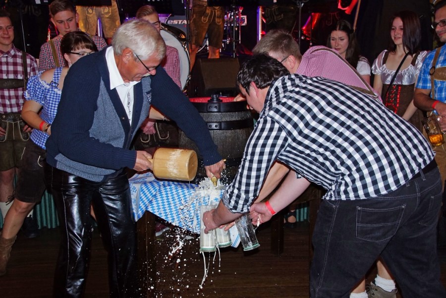 Eine Pfarrdelegation hat uns an der sogenannten Küsterschule bereits erwartet. Schnell wurden wir auf die Gastfamilien verteilt, um dort das Abendbrot einzunehmen. Schließlich stand noch ein festlicher Programmpunkt an - die "Ausgrabung der Kirmes" an der Dorflinde mit anschließendem "Oktoberfest" im Gemeindehaus. Auch die beiden "Schulzes", wie dort die Bürgermeister genannt werden, verstanden sich auf anhieb. Allerdings muss der Schulze aus Gernrode das Bieranzapfen noch etwas üben. Wie im letzten Jahr ging der das kostbare Naß mehr auf den Boden als in die Krüge -grins-.