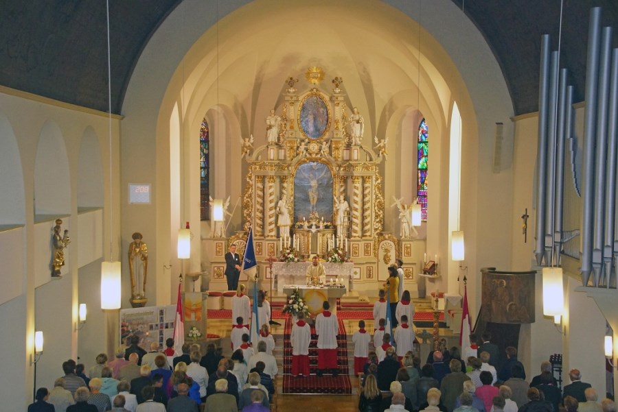Der Kaplan erklärte in seine Predigt zum Evangelium über die geladenen Gäste beim Hochzeitsmahl Gottes, dass alle eingeladen sind, egal ob gut und böse, ob arm und reich, ob Einheimische oder Fremde - aber die "Kleidung" müsse angemessen sein. Mit Kleidung ist hier das Leben gemeint. Wie Kleidung wird manchmal aus das Leben "schmutzig" oder es geht ganz verloren. Aber durch Jesus haben wir immer wieder die Möglichkeit unsere "Kleidung" zu reinigen, oder wenn wir es nicht mehr haben, es neu zu erwerben. Dafür gibt es das Sakrament der Versöhnung. Mit "Großer Gott wir loben dich" und dem sakramentalen Abschluss des Festgottesdienstes endete der erste Teil dieses ereignisreichen Tages.